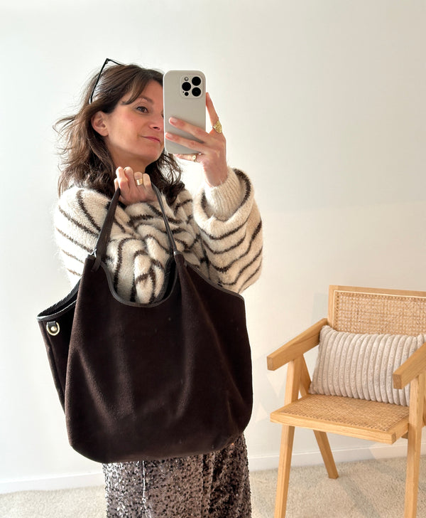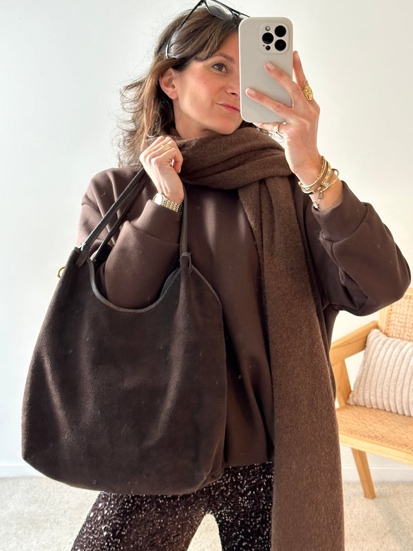 Description : Magnifique sac en cuir (daim) de taille moyenne. Pochette à l'intérieur. Vendu avec une grande lanière mais sans les grigris.