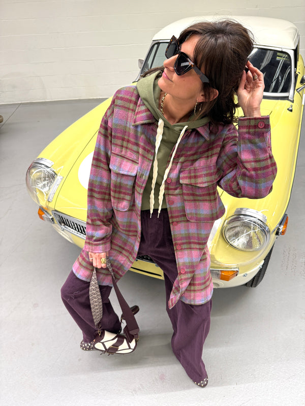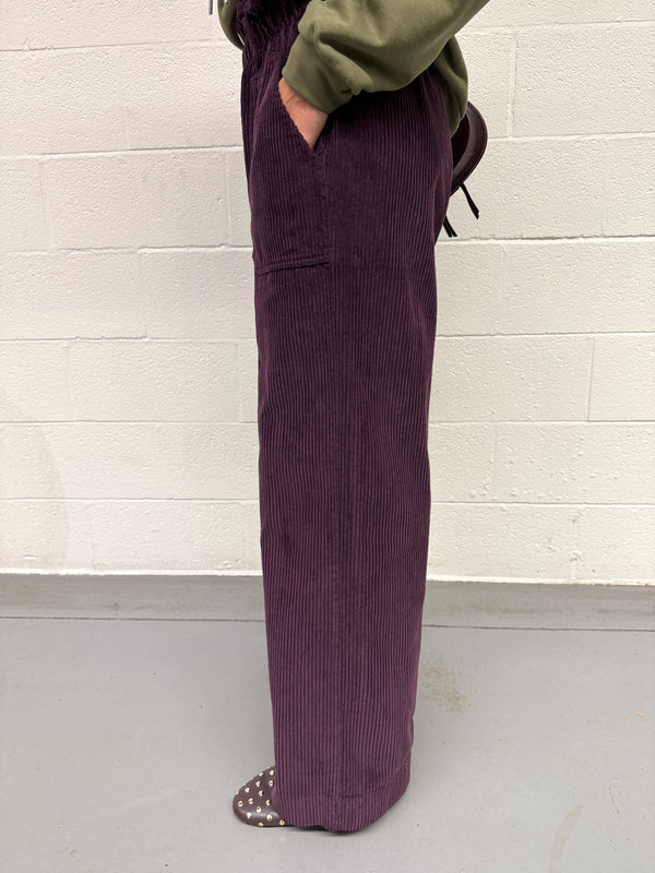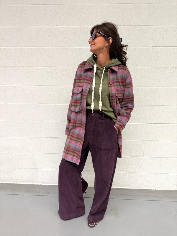 Description : Joli pantalon à la couleur aubergine hyper confortable grâce à son élastique à la taille. Coupe large. Poches sur les côtés. Disponible en 3 tailles : S, M et L. Magnifique avec la veste à carreaux Billie !