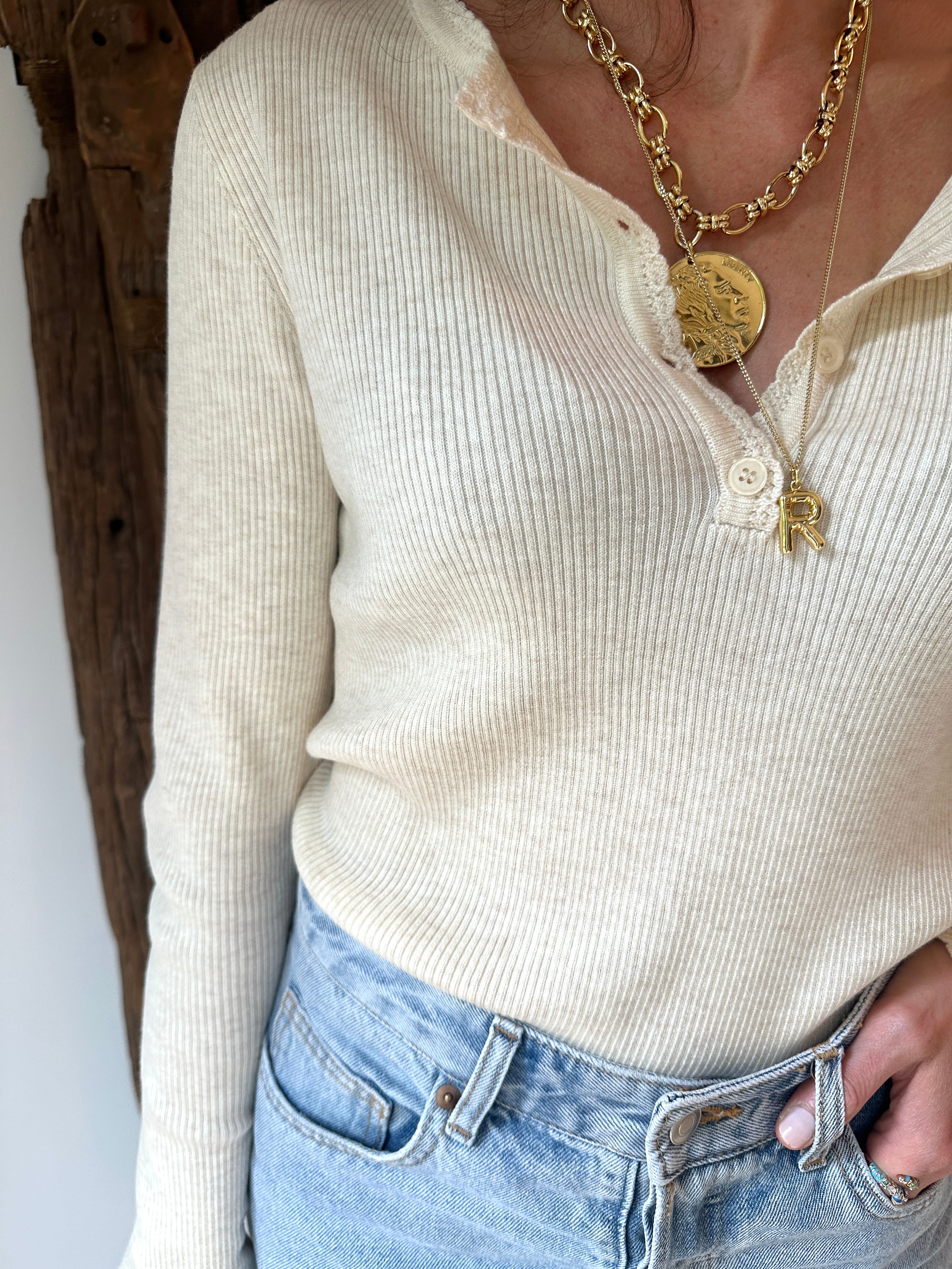 Description : Milo c'est le petit pull près du corps facile à porter seul ou en dessous d'une veste/maille ! Jolis détails aux manches et au col. Boutons au niveau du décolleté. Disponible en 2 tailles : SM et ML. Coupe super féminine !