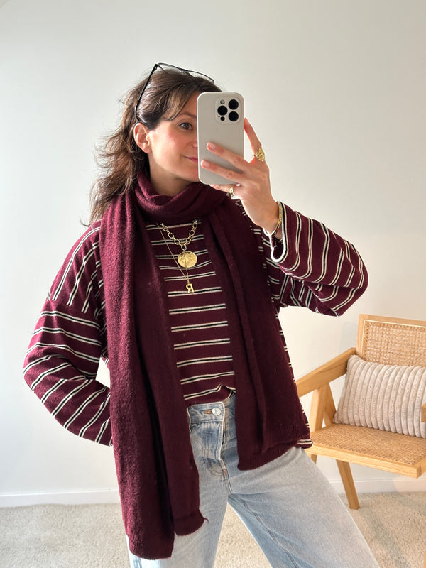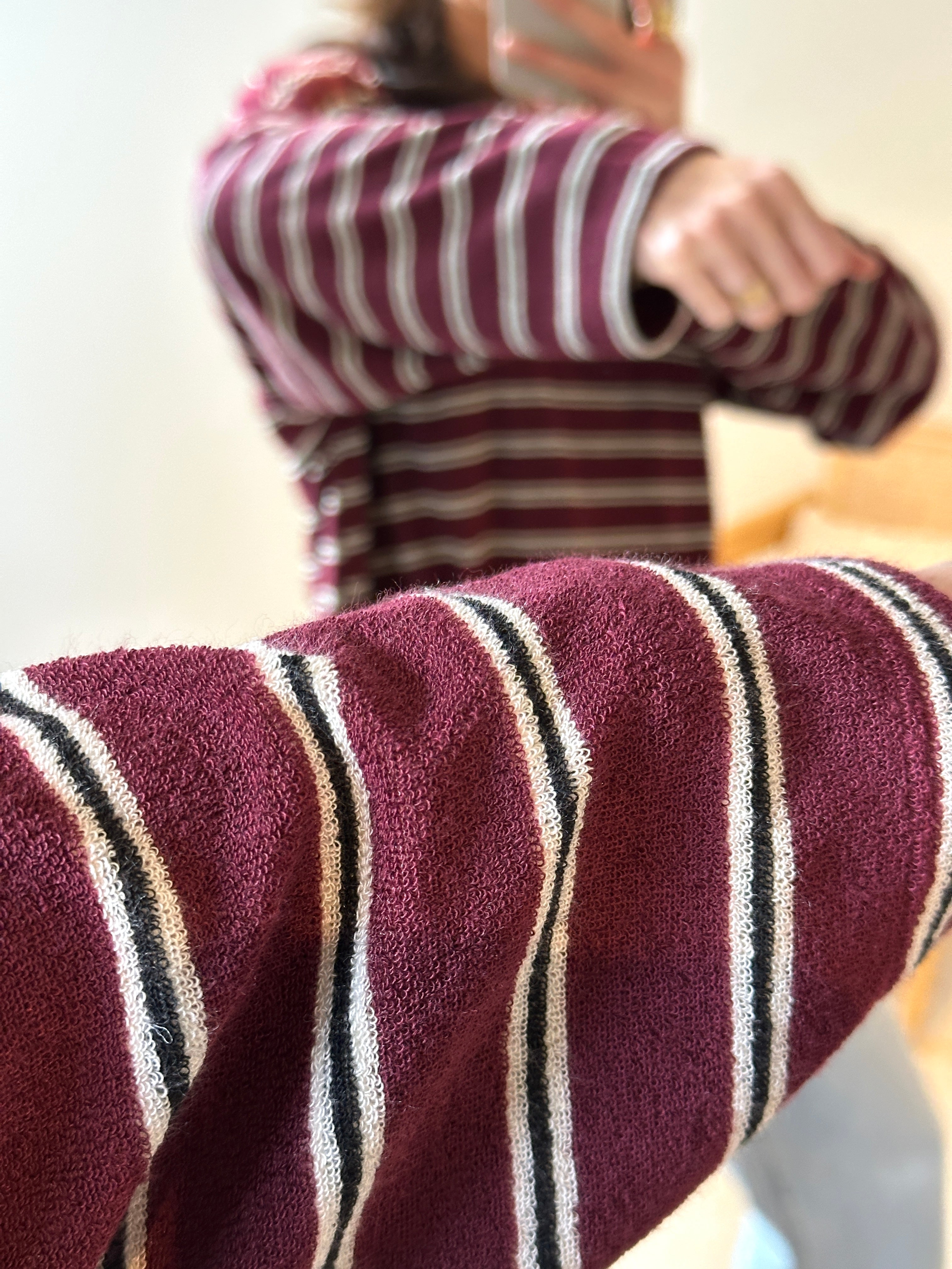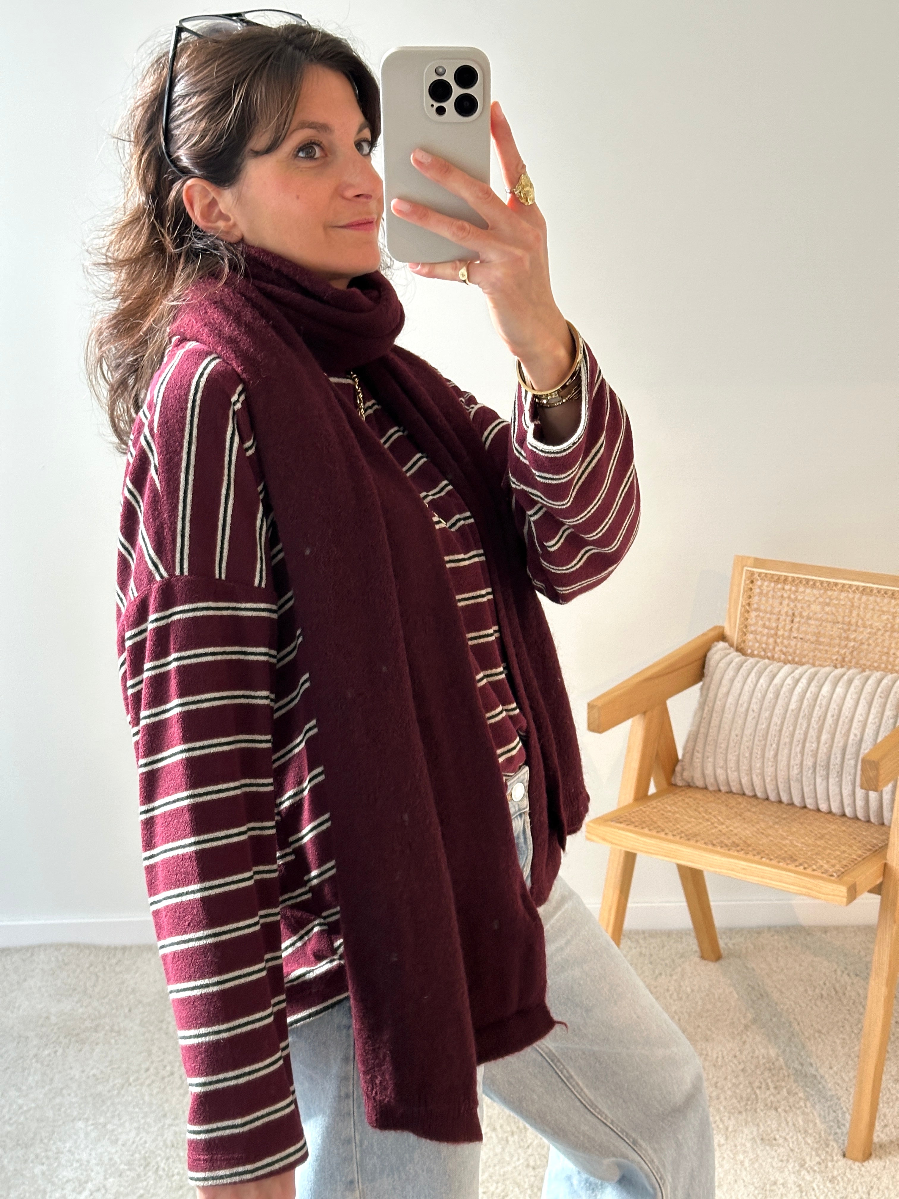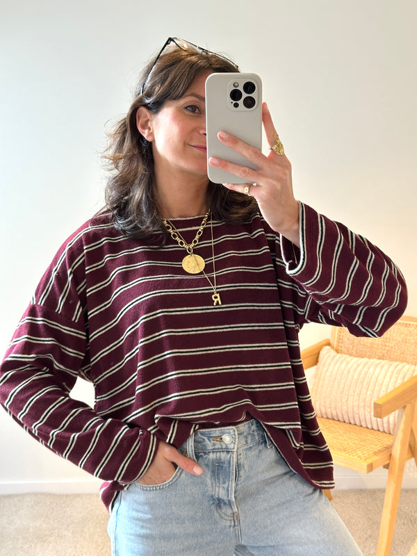 Description : On craque pour le sweat en éponge Bao de couleur bordeaux ! Taille unique, coupe oversize. Tout doux ! Fabriqué en Italie
