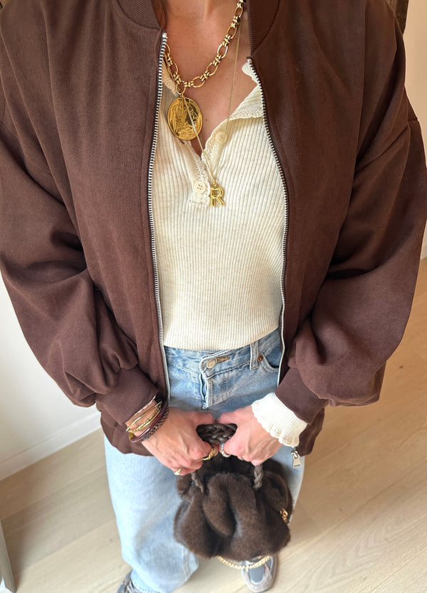 Description : A porter en veste ou en gilet, Tom je l'ai choisi pour sa magnifique coupe et sa couleur tendance ! Fermeture éclair sur le devant. Poches sur les côtés. Taille unique. Coupe oversize. Matière toute douce et souple ! Fabriqué en Italie.