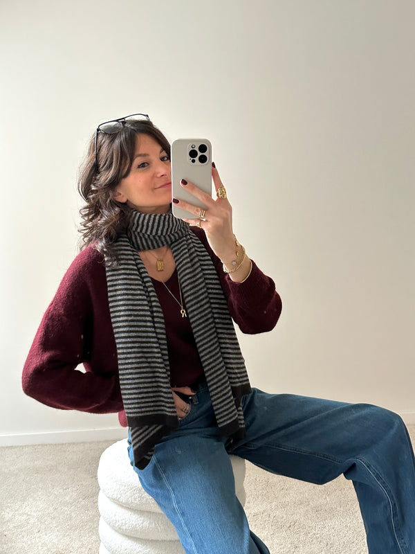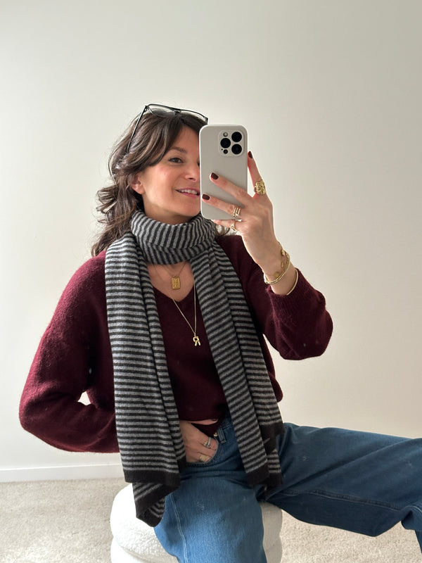 Echarpe laine Jeanne gris et marron