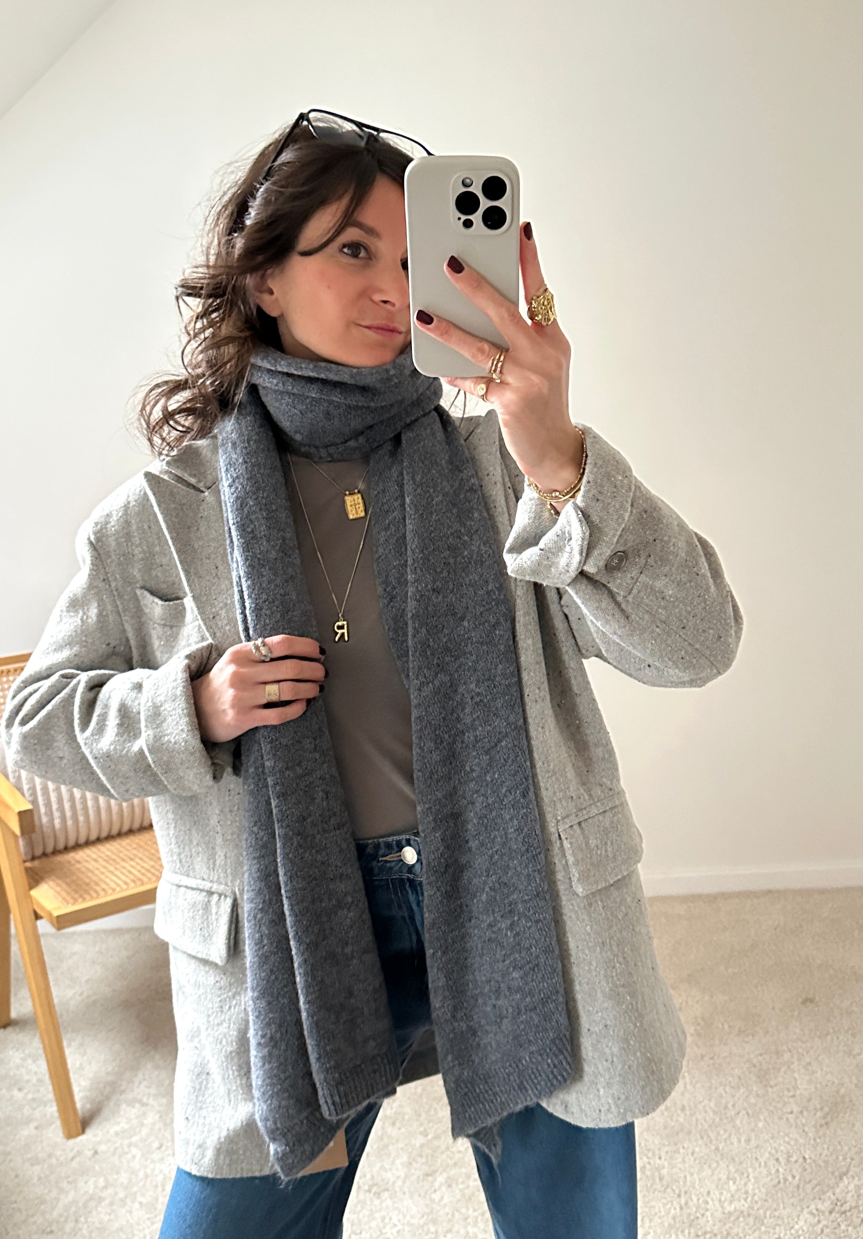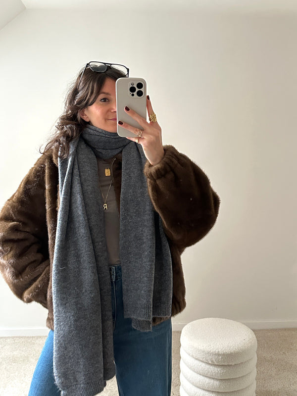 Description : Longue écharpe bordeaux douce et chaude. Fabriquée en Italie.