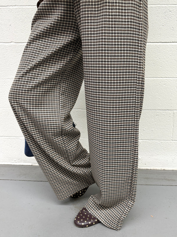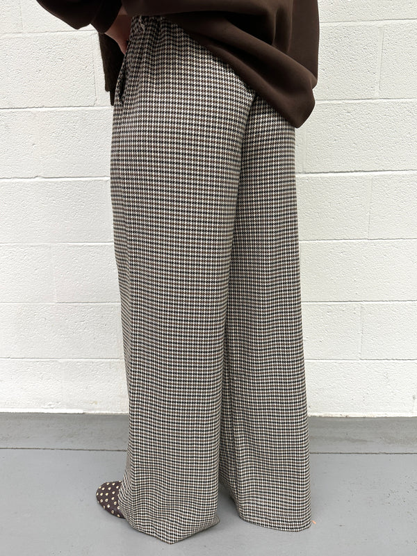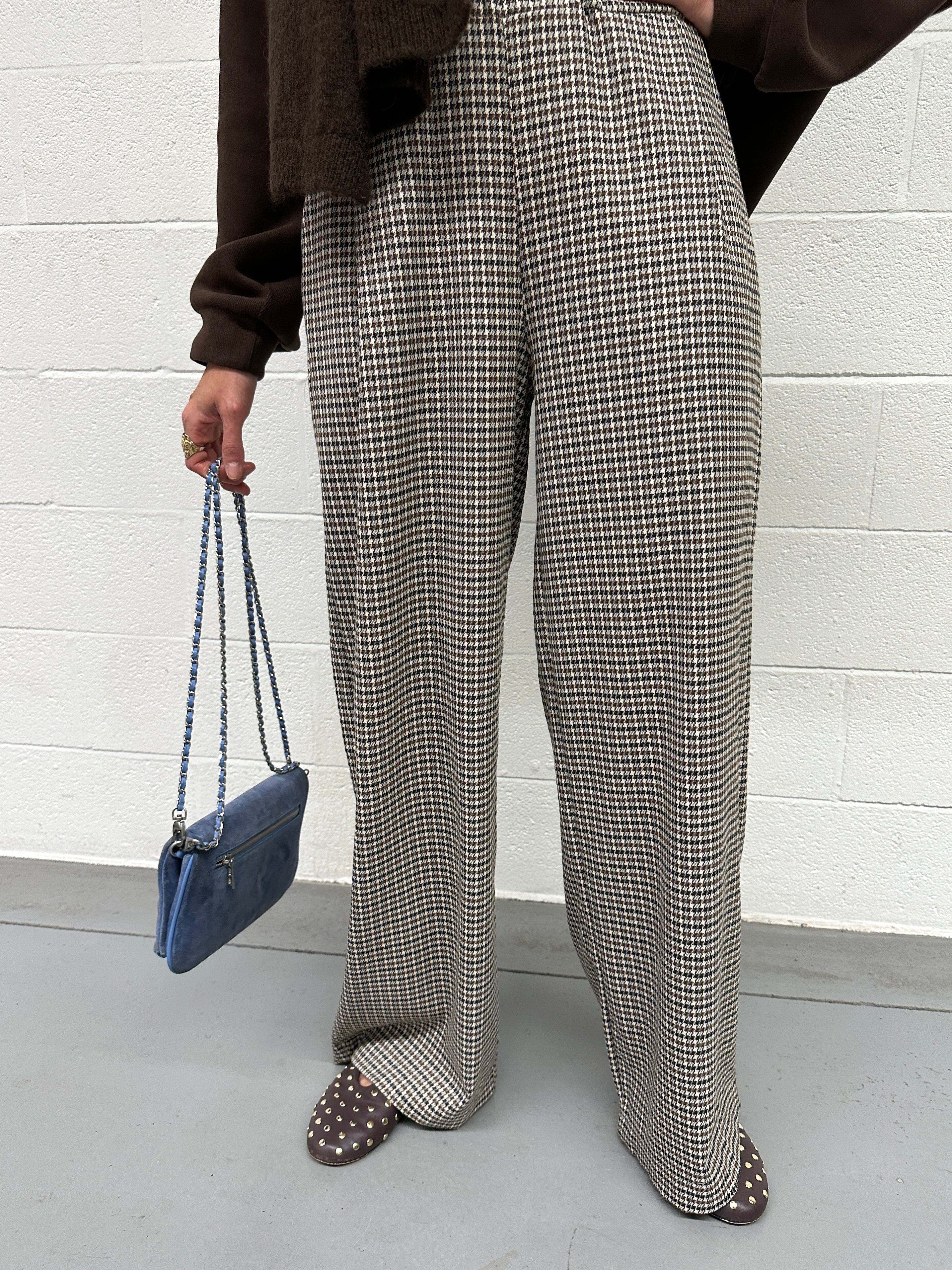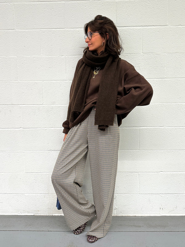 Description : Beau pantalon hyper confortable à la taille élastique. Imprimé à carreaux de couleurs marron et beige. Fabriqué en Italie. Taille unique.